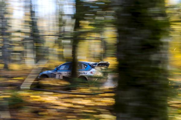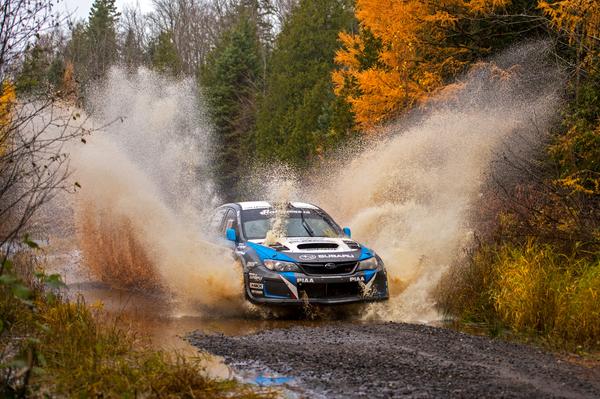 David Higgins carves through the fall covered woods of northern Michigan to victory at Lake Superior Performance Rally.