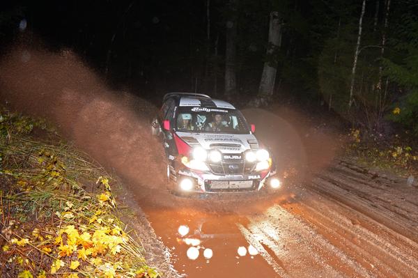 Travis Pastrana on the attack during the night stages of Lake Superior Performance Rally.